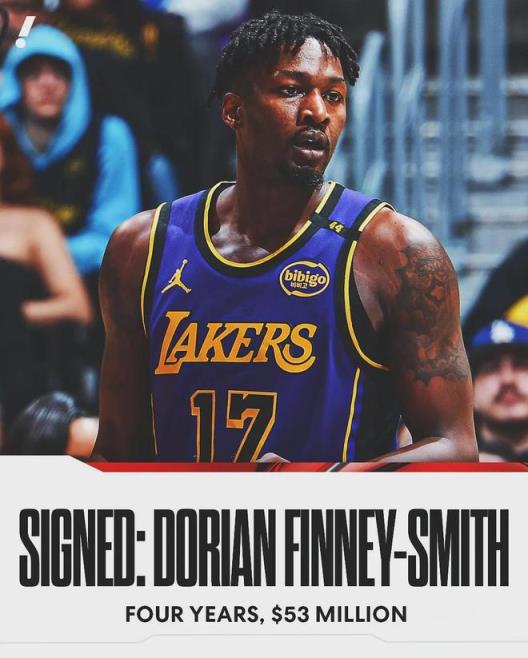 32歲的多里安芬尼史密斯,上賽季場均9分,3個籃板,1次助攻。有著41%的三分球命中率,是一名防守非常出色的前鋒。他與賈里德范德比爾特和八村壘組成的鋒線防守組合,上賽季給不少球隊(duì)的內(nèi)線球員,造成了巨大的困擾。湖人也想不到,多里安芬尼史密斯居然被截胡了。