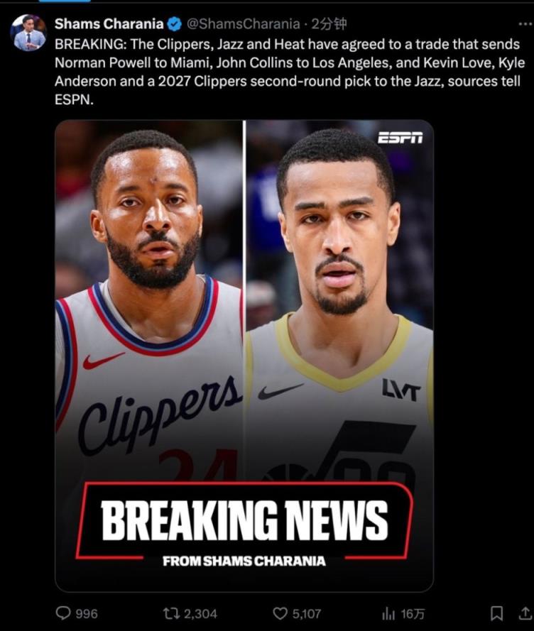 熱火獲得?:快船隊(duì)后衛(wèi)鮑威爾,上賽季場(chǎng)均21.8分,三分命中率41.8%,能顯著增強(qiáng)外線火力。