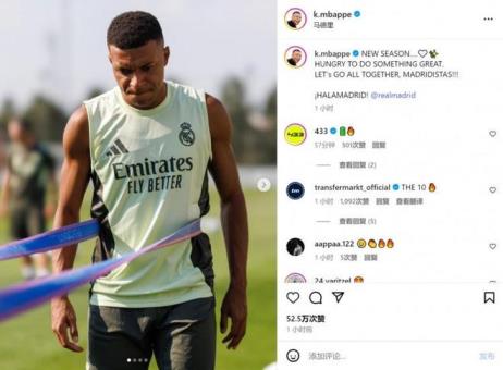 8月5日,姆巴佩在社交媒體上更新了動態(tài),分享了他參加季前訓(xùn)練的照片。姆巴佩在社交媒體上發(fā)布了一張訓(xùn)練照片,配文寫道:“新賽季…期待創(chuàng)造輝煌,讓我們共同努力,皇馬人!HALA MADRID!”